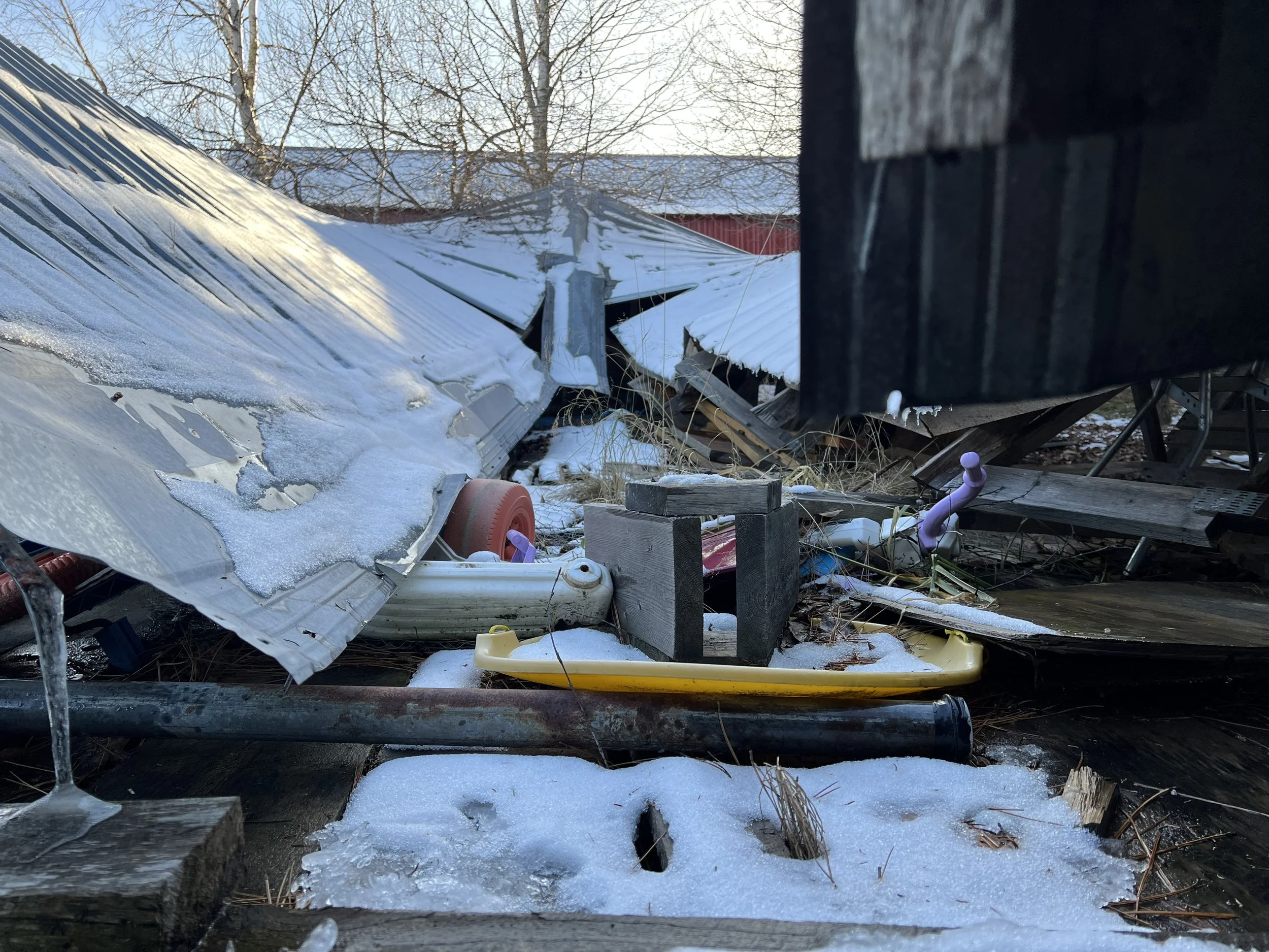 The snowmobile shed was, I believe, the last to be built and the first to fall.